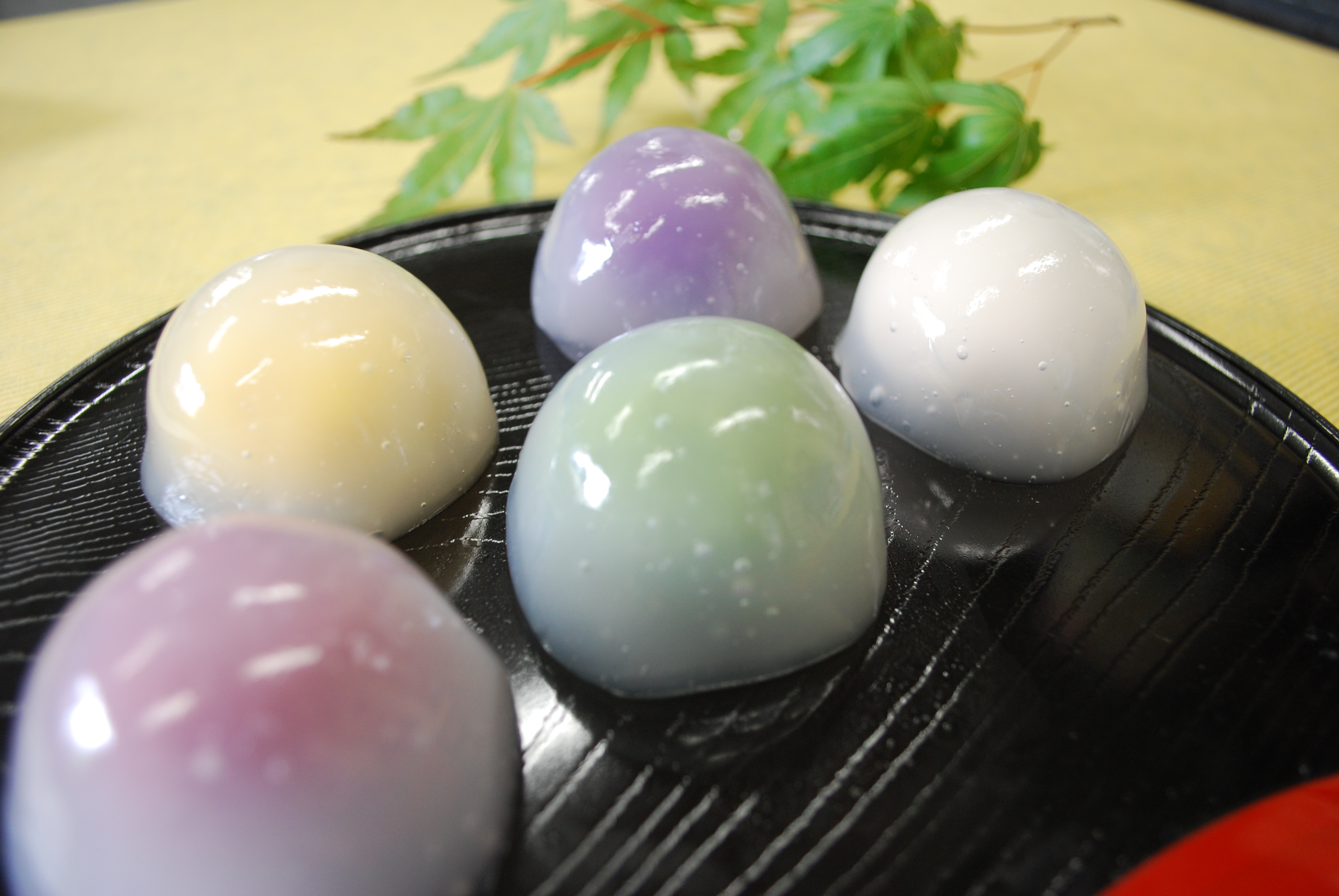 次に、お中元用の商品開発ですが、はじめは「夏は涼しげなスイーツが売れる」「色鮮やかな商品が目を引く」という渡邉さんのアドバイスを受けて、フルーツを使ったカラフルなわらび餅を提案したんです。一度は採用に至ったのですが生産性などの課題もあり、再度渡邉さんから「スイーツのカタログギフトでは、トップ10に抹茶商品が入る」と聞き、「くりまつり」をベースに抹茶の要素を入れ込むことに。下は抹茶のわらび餅、上は濃い色の抹茶栗きんとんを絞り、「抹茶くりまつり」が完成しました。