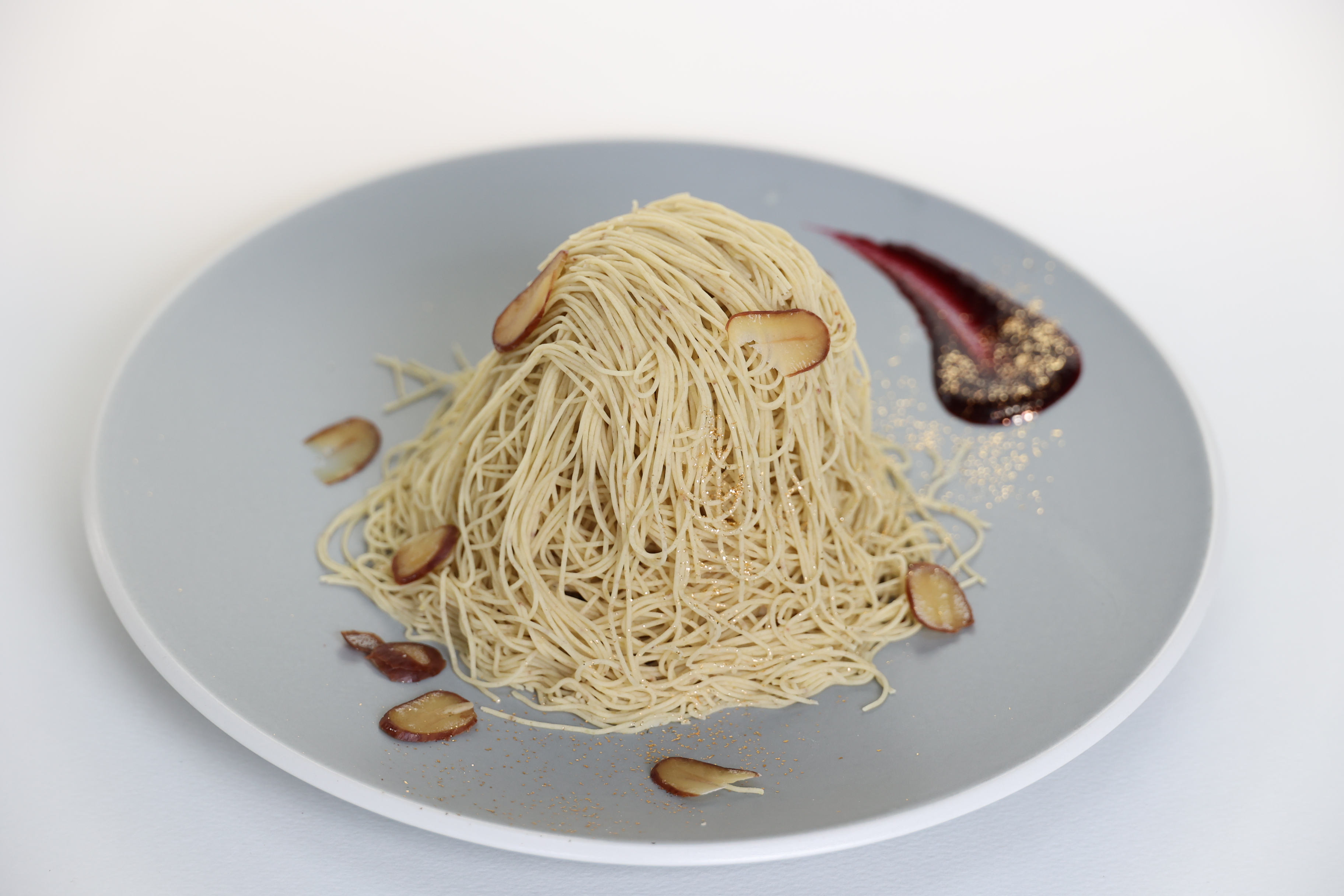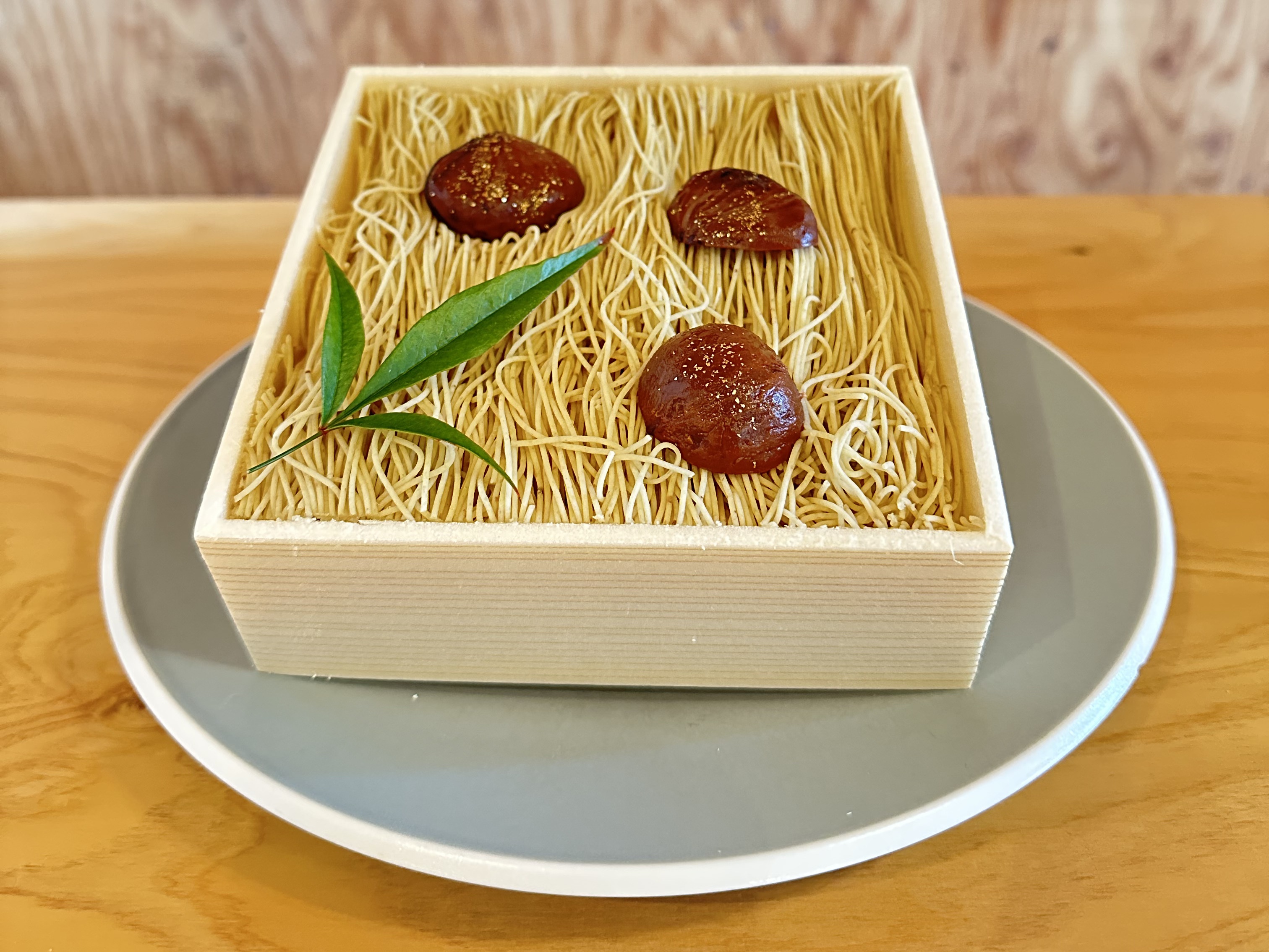 「buyer’s one」にエントリーしたのは看板商品の「栗きんとん」でしたが、バイヤーの渡邉さんとお歳暮カタログへの掲載を前提にお話を進めるなかで弊社の他の商品も検討し、とくに興味をもっていただけたのが「栗松利(くりまつり)」という商品でした。弊社のカフェで人気のパフェやデザートを「お土産として持ち帰りたい」というお客さまのリクエストから誕生した商品で、栗のクリーム大福の上に、栗きんとんを1mmの細さに絞って箱に入れてみたのがはじまりです。味に関しては渡邉さんにもすぐにOKをいただけたので、見た目の華やかさを増すため黄色い栗の甘露煮をトッピングするなど、百貨店のお歳暮にふさわしい仕様変更を行ないました。