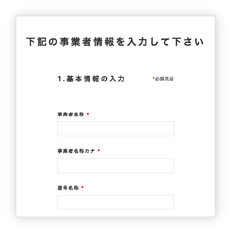 「事業者情報」を入力し、ページ下部の「確認画面へ進む」をクリックすると、確認画面へと遷移します。